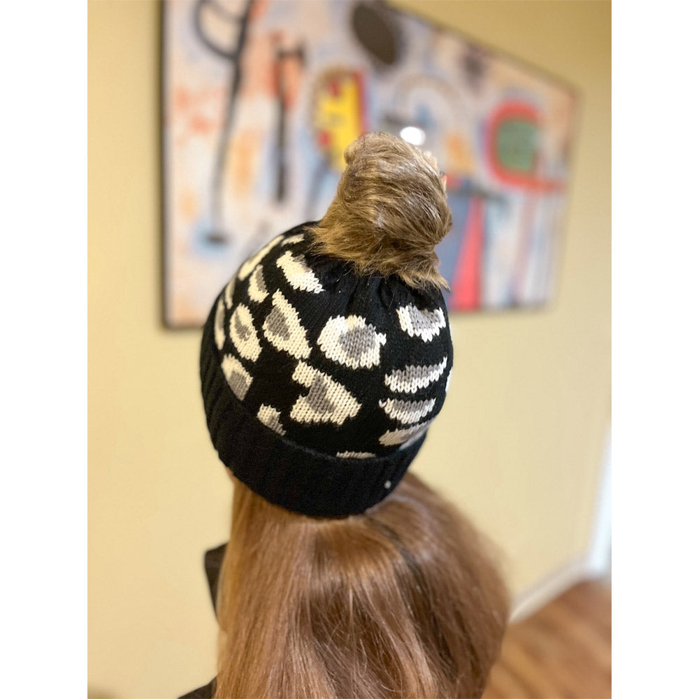 Turn up the cozy-chic factor with the Ramona Hat! Featuring a playful leopard print and soft, faux fur pom-pom, this stylish beanie adds instant personality to any outfit. The snug knit design keeps you warm while looking effortlessly on-trend. Pair it with gloves for an ideal winter gift set or a fun finishing touch to your cold-weather look.