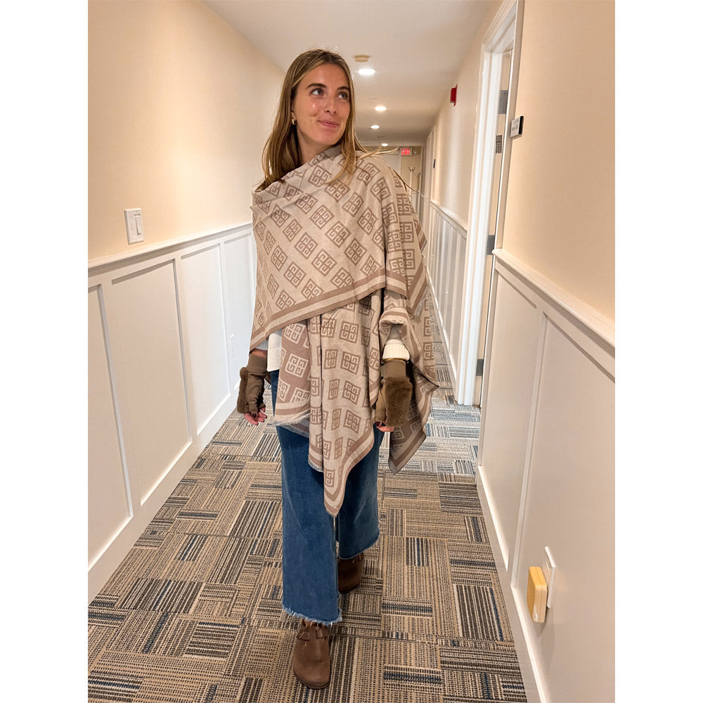 Elevate your everyday style with this chic, elegant reversible wrap. Featuring a timeless Greek key pattern in classic colors, this versatile layer adds instant polish to any look. Soft and luxurious with a cashmere-like feel, it’s the ideal travel companion or cool-weather staple. Effortlessly flattering and one size fits all—a sophisticated gift she’s sure to love!