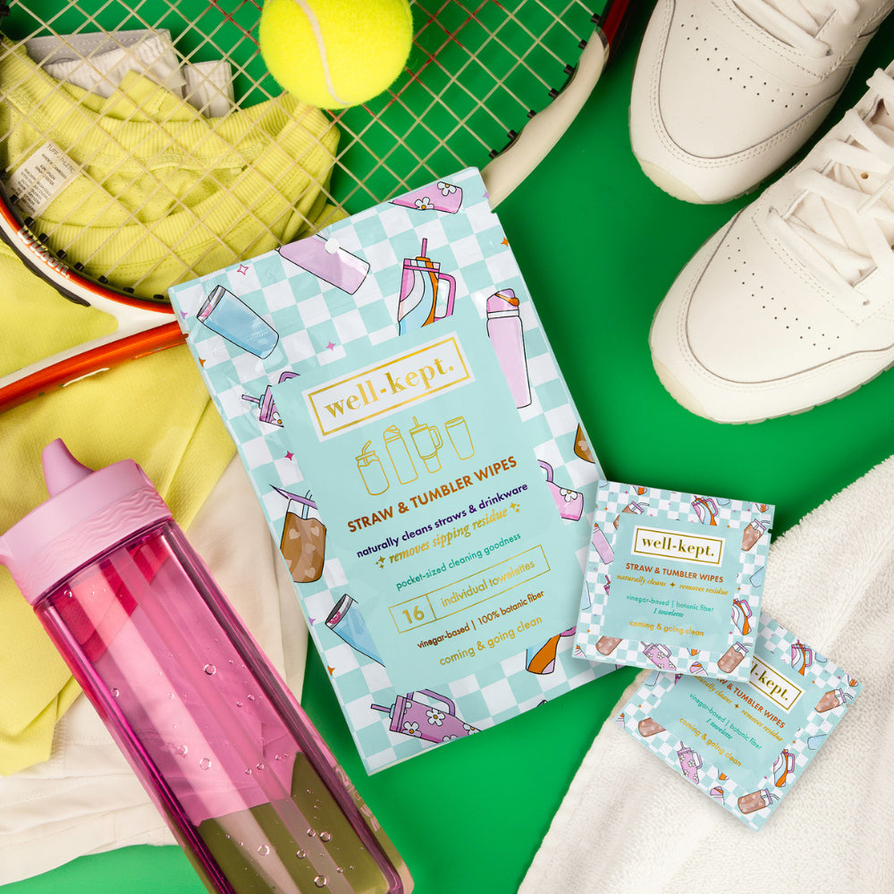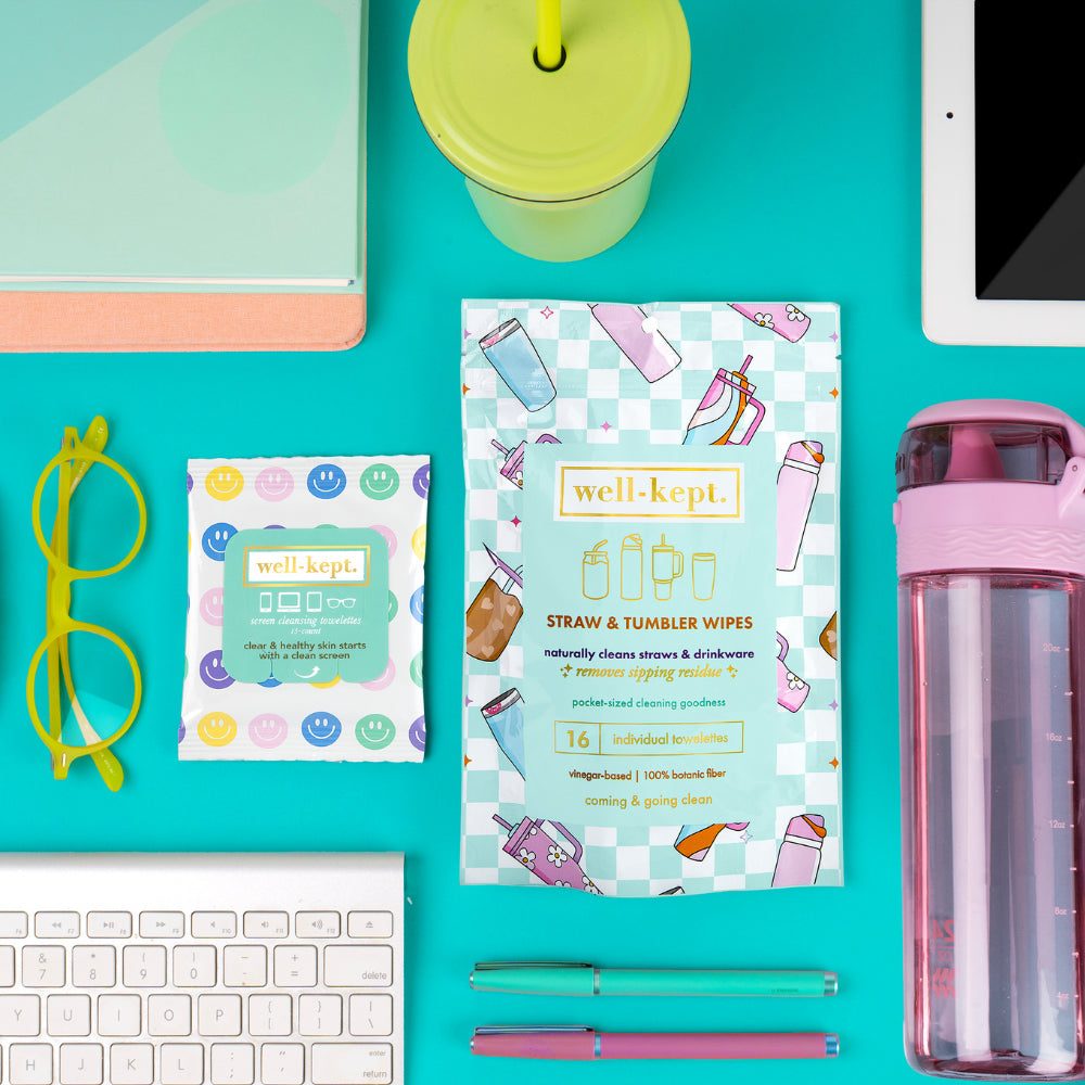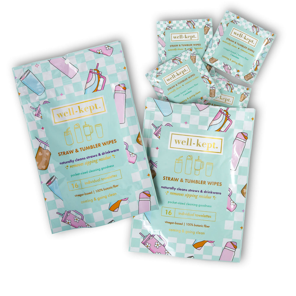 Sip clean, stay fresh. The Straw & Tumbler Wipes are made to keep your drinkware as fresh as your favorite sip—no sticky straws, no lingering lip gloss, no toddler germs. This set includes two pouches with 32 total wipes, so you’ll always have a quick clean on hand.