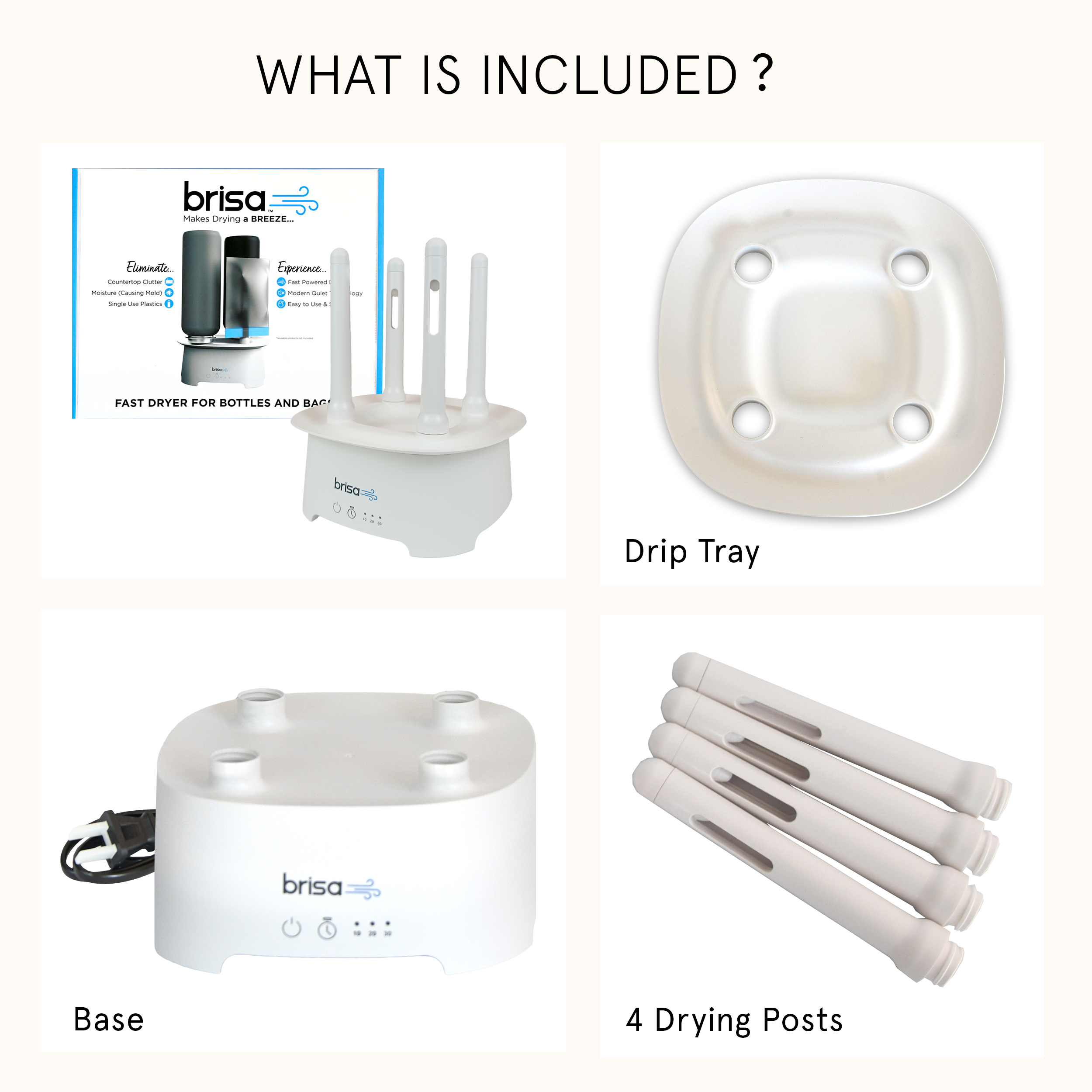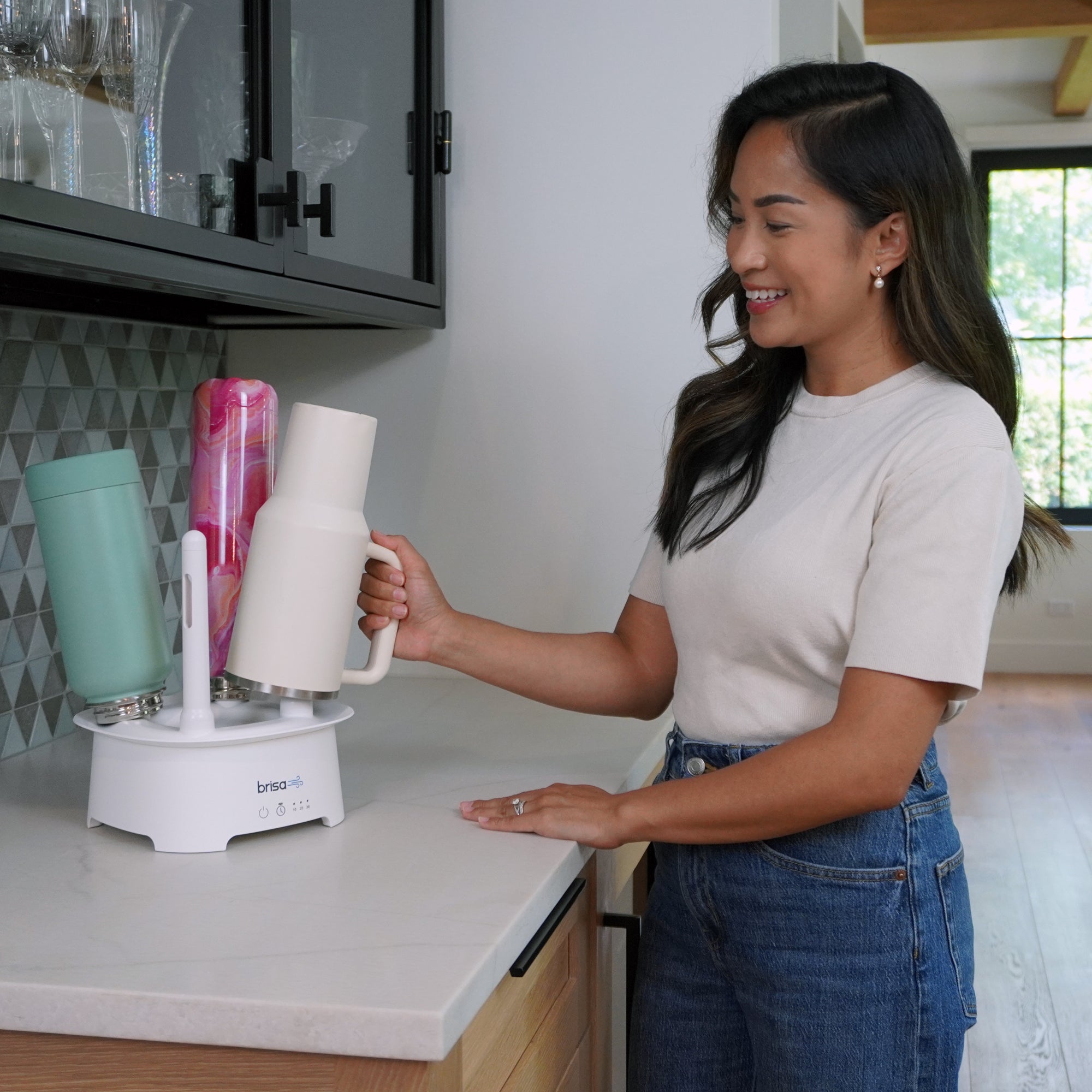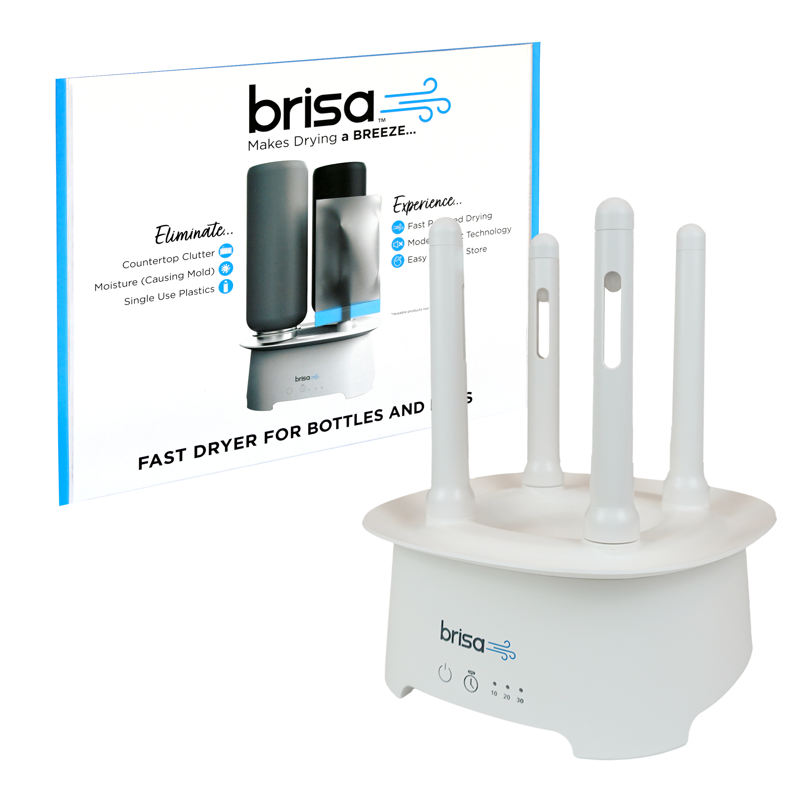 The Brisa Rack is the smarter way to dry reusable kitchen items. This compact electric drying rack quickly dries reusable kitchen items like bottles, bags, containers, baby bottles, wine decanters, and more. It fits neatly on your counter and uses warm air with timed cycles to eliminate residual moisture that can lead to mold.
