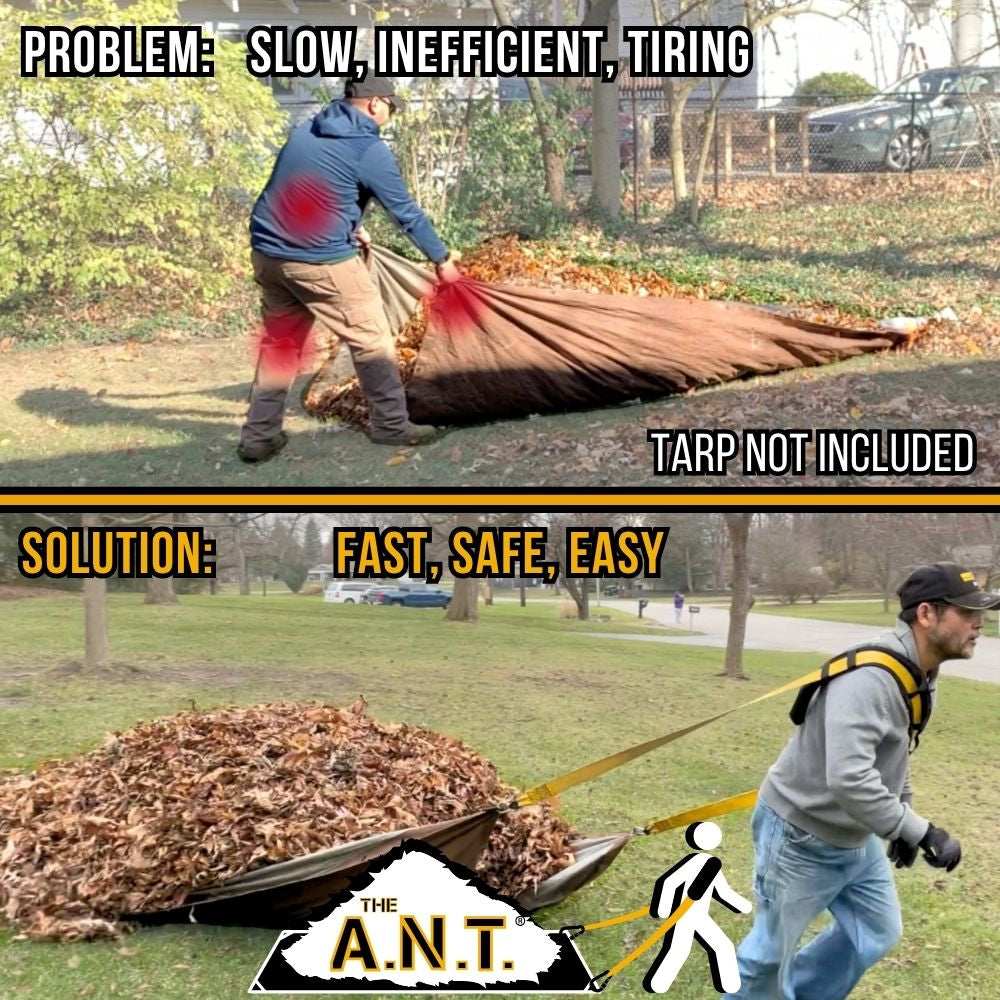 Do you or a loved one struggle with cleaning up the yard every season? This year, take the hard work out of yard work with The A.N.T., a heavy duty padded strap that clips into the grommets of a tarp, making your fall cleanup faster, safer, and easier.